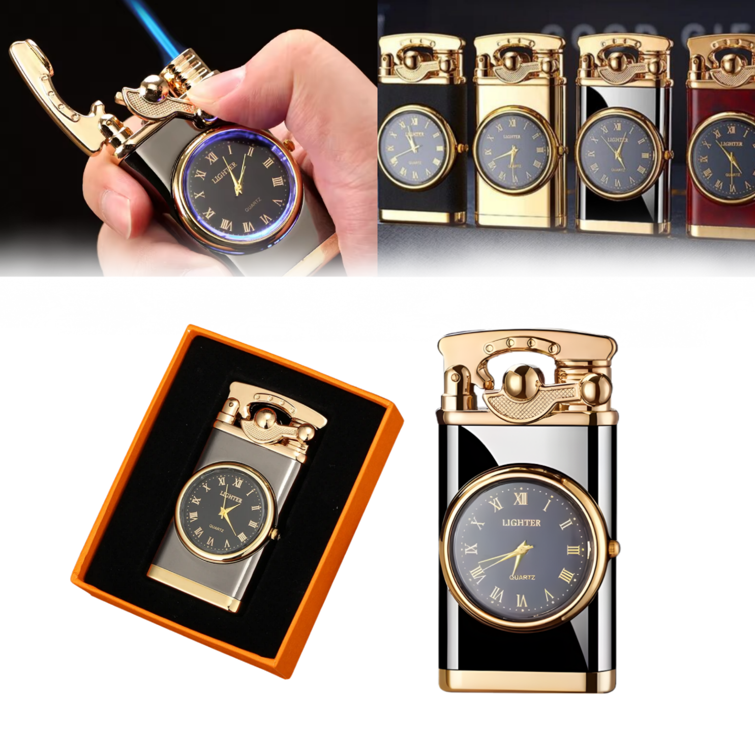 Vreme je za nadogradnju na uređaj koji kombinuje eleganciju i funkcionalnost. Ovaj 2-u-1 model nudi snažan plamen otporan na vetar i precizan mehanički sat u jednom sofisticiranom kućištu.